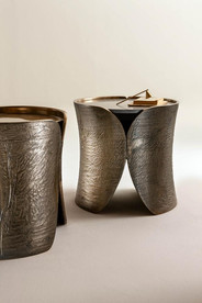 My favorite is the liquid metal finish. One of the most iconic Laura Meroni finishes: artisanal, innovative, shiny and unconventional, it is used to reinvent wooden surfaces and enhance carvings.